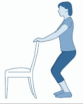 - Hold onto a chair or work surface for support.
